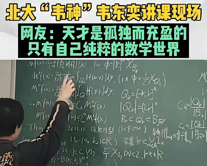 “有些题目,博士生团队讨论几天解不出来,韦东奕看一眼就能给出答案。”然而,这位天才并不擅长社交,甚至因为讲课过于深奥,一度被学生吐槽“听不懂”。