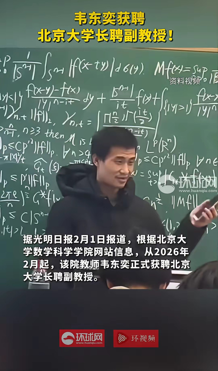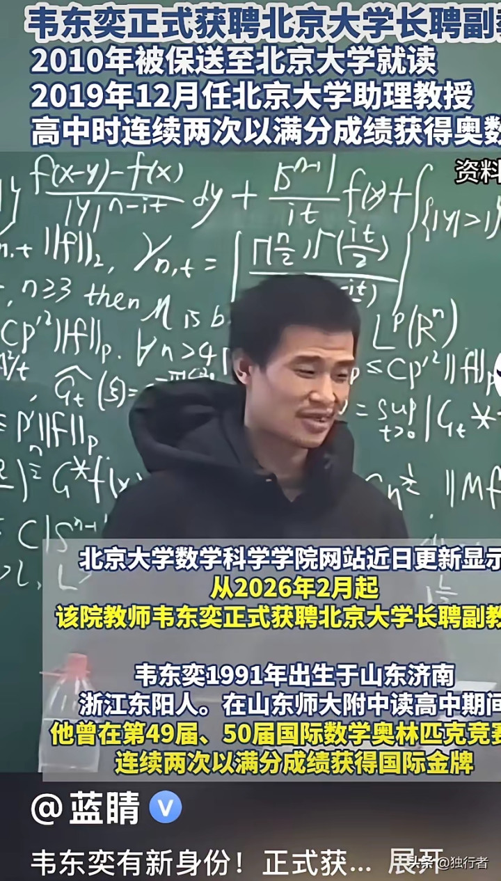 2026年2月,一则消息引爆全网:韦东奕正式成为北京大学长聘副教授,享受正高级待遇。